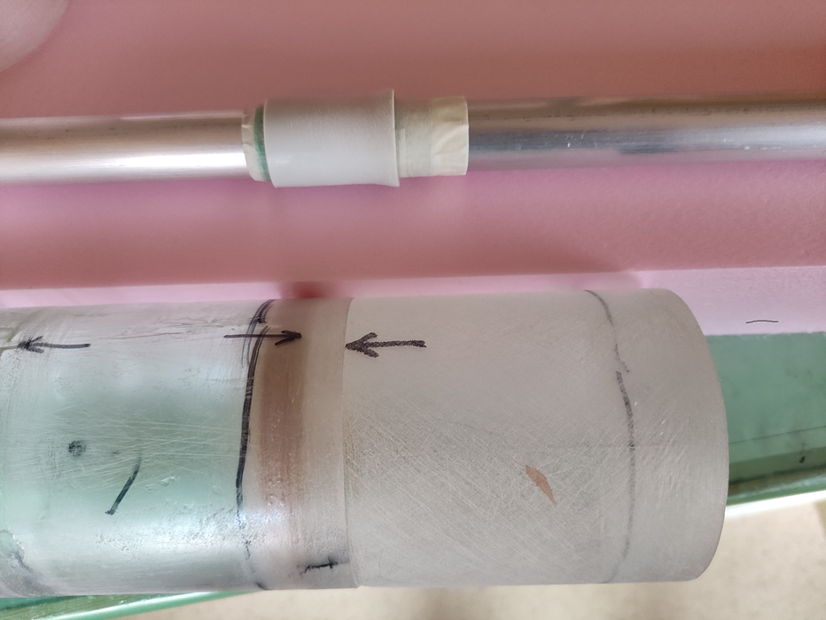 heute habe ich den Drucktank geschliffen für das nachfolgende Laminieren mit Glasgewebe (Köper 105 g/m² R&G ) ! Es werden 2 Lagen sein ,was ein Gewicht von ca. 140 g entspricht (Gewebe /Harz )!Der Tank selber hat jetzt 400g ! Laut der Barlow-Formel würde die "GFK-Hülle" einen (rechnerisch/theoretisch) Druck von ca.17,9/18,8 Bar standhalten ! Laminatdicke 0,23 mm (2 Lagen /35% Volumen Fasern /Handlaminat ),Zugfestigkeit Schuß : 320 MPa /Kette :335 MPa,Durchmesser :82mm. P=2 x 320 MPa x 0,23mm / 82mm = 1,79 MPa = 17,9 Bar Schuß / Kette :18,8 Bar ! Der Drucktest wird zeigen wieviel die "verklebten" Segmente + "Glasgewebehülle" wirklich aushalten ,16 Bar wären schon "geil" ! Das zuvor aufgetragene Klebeharz (Primer/Kupplungsschicht) war ausgehärtet und konnte somit sehr gut angeschliffen (80ziger Papier)werden ! Geändert von Segelflieger63 am 24. Juli 2025 um 20:51 Gruß Andreas |