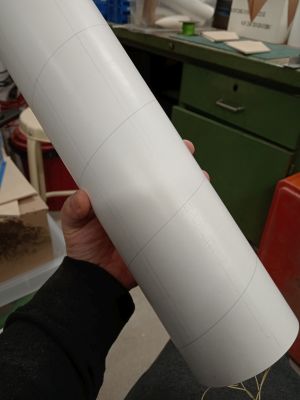 Als nächstes werde ich den Übergang weiter bearbeiten und schleifen sowie die Spiralen am Körperrohr verspachteln.