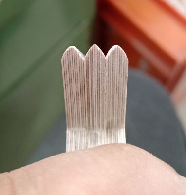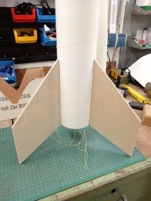 Ich habe mittlerweile die Flossen abgerundet. Alles händisch mit 120er Schleifpapier. War bei dem Flugzeugsperrholz nicht gerade eine einfache Sache und ein Bandschleifer steht jetzt auf meiner Baumarkt-Liste wink