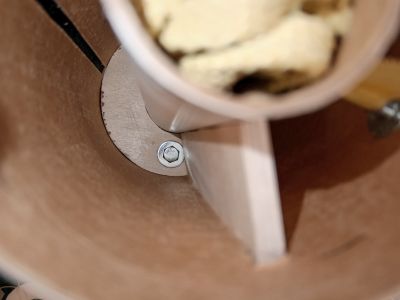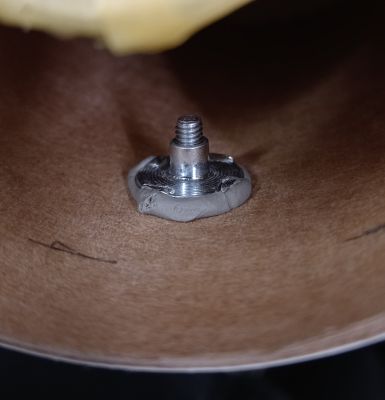 Ich verpasste der Einschlagmutter einen Ring aus 2K Epoxy Knete. Hatte das natürlich vorher an einem Teststück ausprobiert. Damit wird die Rundung des Körperrohrs ausgeglichen und das Gewinde bleibt frei.