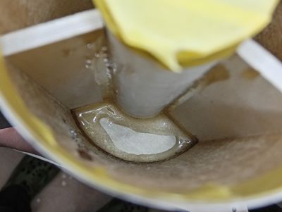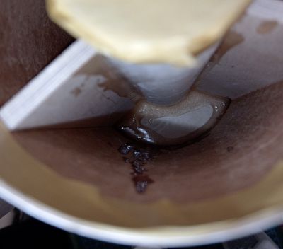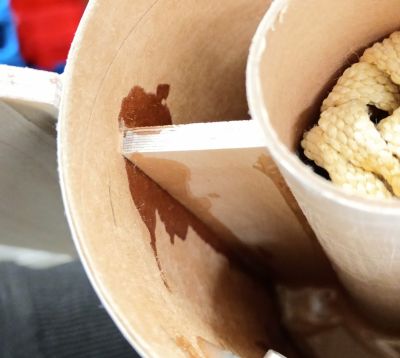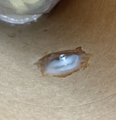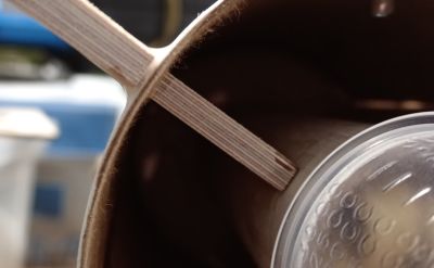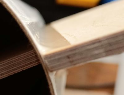 Nachdem ich das Epoxy in einem gekürzten Pappbecher angemischt hatte, ließ ich es an den zu klebenden Kanten nach unten laufen. So entstehen die Fillets von selbst.