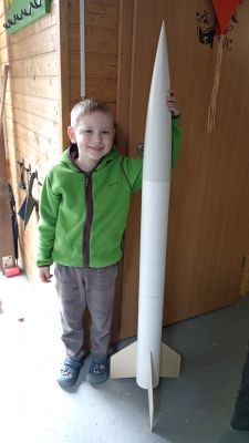 Hier noch ein Schnappschuss meines Sohnes... Der wollte wissen, wie groß die Rakete wird... big grin