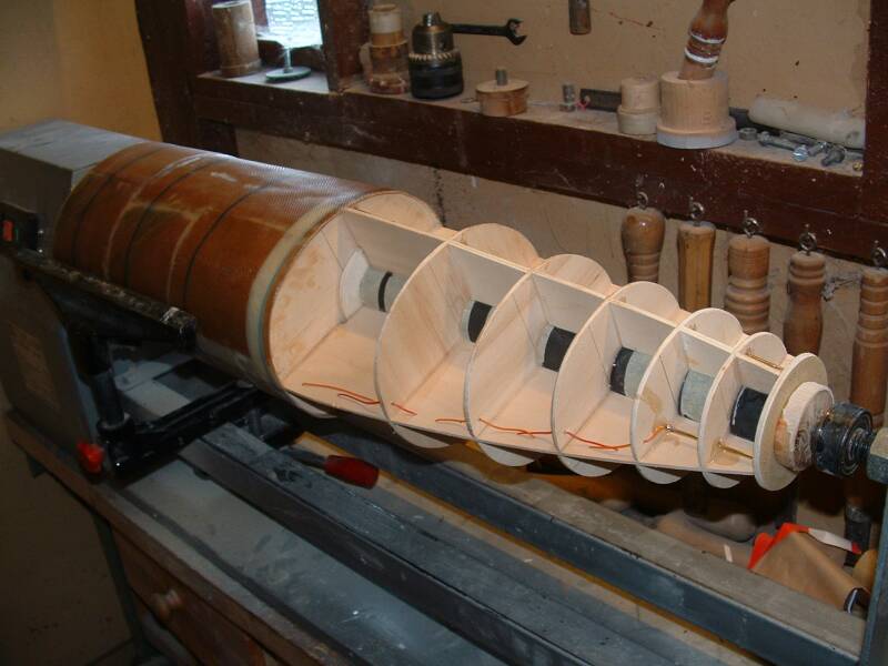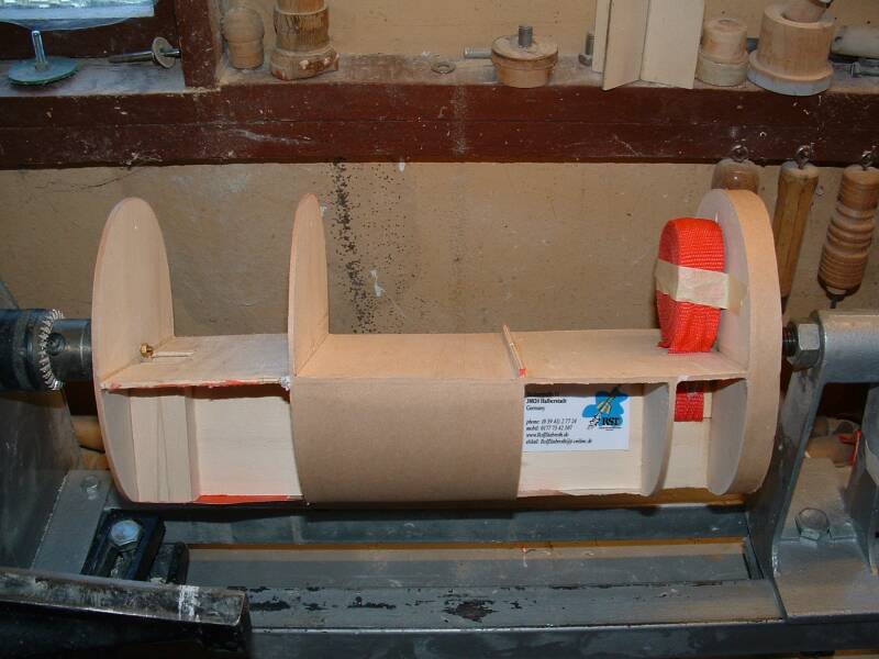 Die einzelnen Kammern werden mit einer dünnen Pappe beplankt und anschließend mit vier Lagen Glasgewebe laminiert. Folgende Datei wurde angehängt: