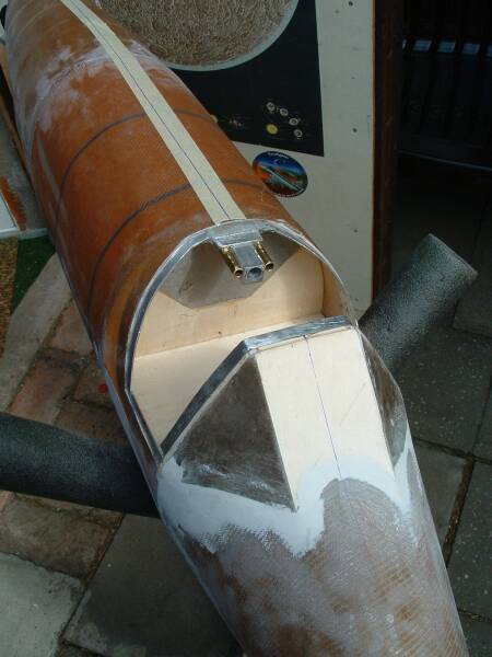 Um das Modell modular zu halten sollte ursprünglich der gesamten Rumpf in drei Teile gefertigt werden. Das hätte aber Nachteile in der Festigkeit und die Passgenauigkeit wäre ein Herstellungsproblem geworden. Die Leitungen für die Timertriggerung sind schon mit eingebaut. Die seitlichen 2mm Messingrohrleitungen sind für die Aufnahme eines späteren Steuergestänges für Quer- und Höhenruder vorgesehen. Folgende Datei wurde angehängt: