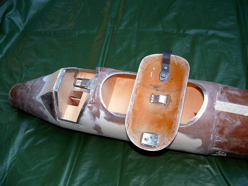 Das Cockpit ist freigelegt und mit seitlichen Auflegekanten für die Abdeckhaube versehen. Ganz oben ist die pyrotechnische Kolbenmechanik des späteren Fallschirmkammerdeckels zu erkennen. Folgende Datei wurde angehängt: