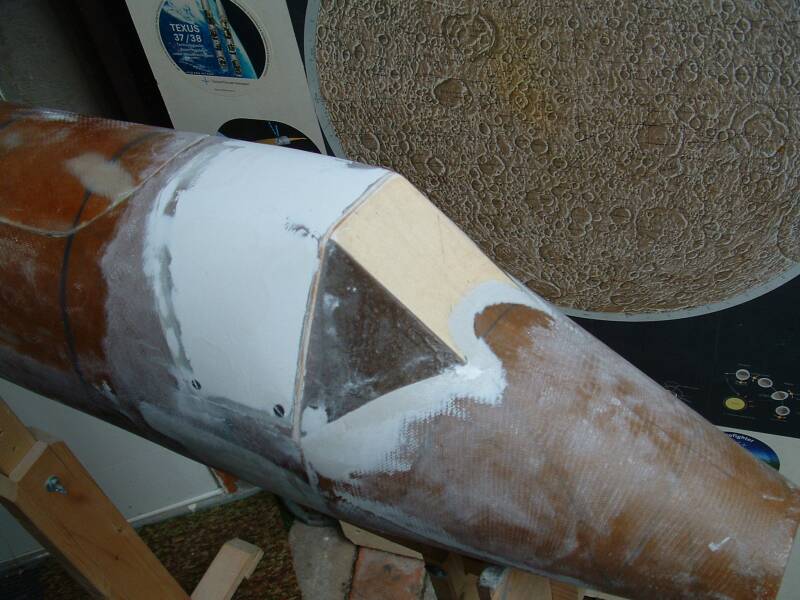 Das Heck der Bachem Natter ist mit GFK bezogen worden. Im Ganzen wird dann noch viel gespachtelt werden. Folgende Datei wurde angehängt: