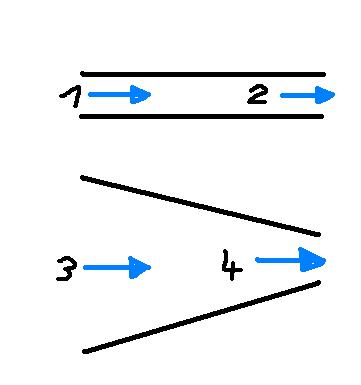 Die Problematik ist folgende: In einer Düse, die am Anfang und am Ende den gleichen Durchmesser hat, kann Wasser nicht beschleunigt werden (wegen der Inkompressibilität). Die Geschwindigkeit des Wassers an der Stelle 1 muss genauso groß sein wie an der Stelle 2. Anders sieht es bei Düsen mit kleiner werdenden Durchmesser oder Rohrverengungen aus. In so einer Düse wird das Wasser von der Stelle 3 zur stelle 4 beschleunigt. Insofern kannst du deinen Ansatz nicht verwenden. Gruß Robert |