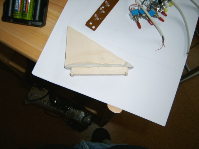 Eine Finnen mit den Stiften am TTW-Streifen: Die Motorhalterung, mit den T-Fräsungen in den Spanten: So sieht das ganze aus wenn es fertig zusmammengesteckt ist. Hier sieht man noch das Ende des Motormounts: Ich hätte die Spanten allerdings noch verglasen sollen, denn bei ständigen einsetzten verschleißen die Seiten an der T-Fräsung, und drohen auszubrechen. Liegt aber wahrscheinlich auch daran das der Prototyp kein Hochpräzisionsgerät ist, sondern nur zu Demonstrationszwecken gemacht wurde, und das alles ein wenig schwergängig ist. MfG Fabian |