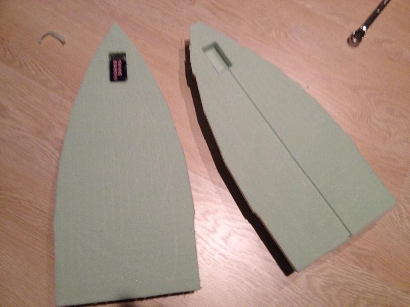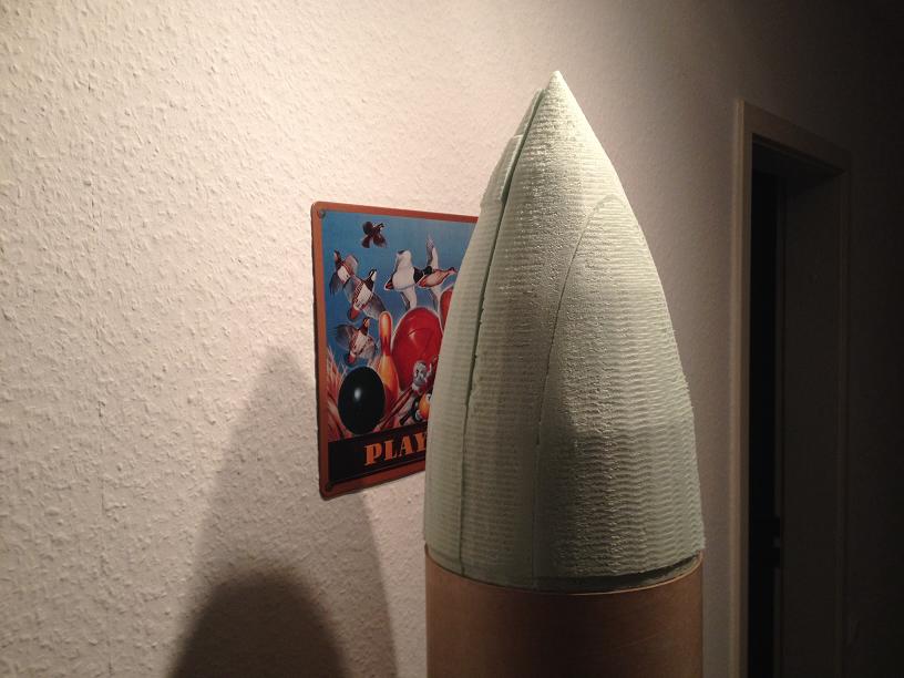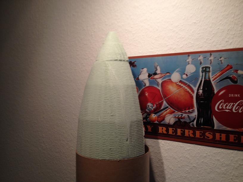Alle Teile für die Spitze sind fertig. Passt alles zusammen: Innen habe ich je ein Batteriefach eingefräst, sowie einen Kabelschacht. Die Spitze ist dann später teilbar, evtl. kommt die Elektronik auch noch rein. Dann gehen unten nur noch die Zünderanschlüsse raus. Die Spitze muss nun noch geklebt, gespachtelt und geschliffen werden, das übliche halt. Gruß Fabian