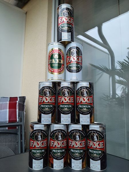 Als erstes wurden 10 Stück FAXE Bierdosen mit Freunden an einem gemütlichen Abend leergetrunken....