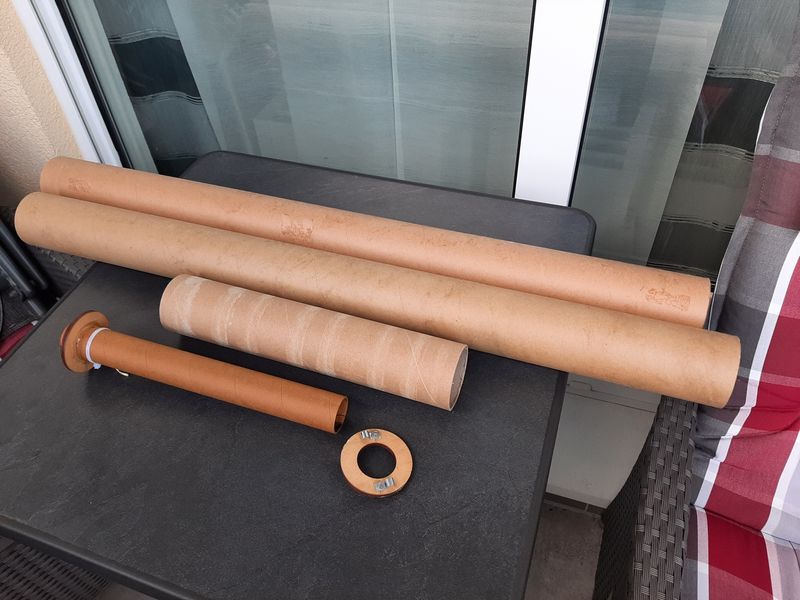 Dann in der großen "Wühlkiste" im Keller ein paar passende 80mm Papprohre (Folienrohre) heraus gesucht...