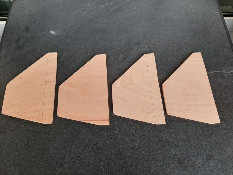 4 Flossen aus 6mm Buchensperrholz auf der Hobby Kreissäge zugeschnitten...