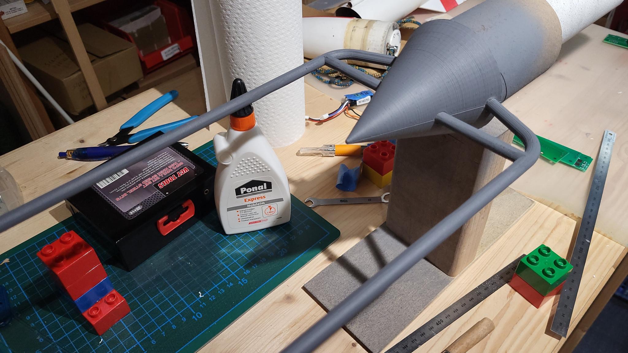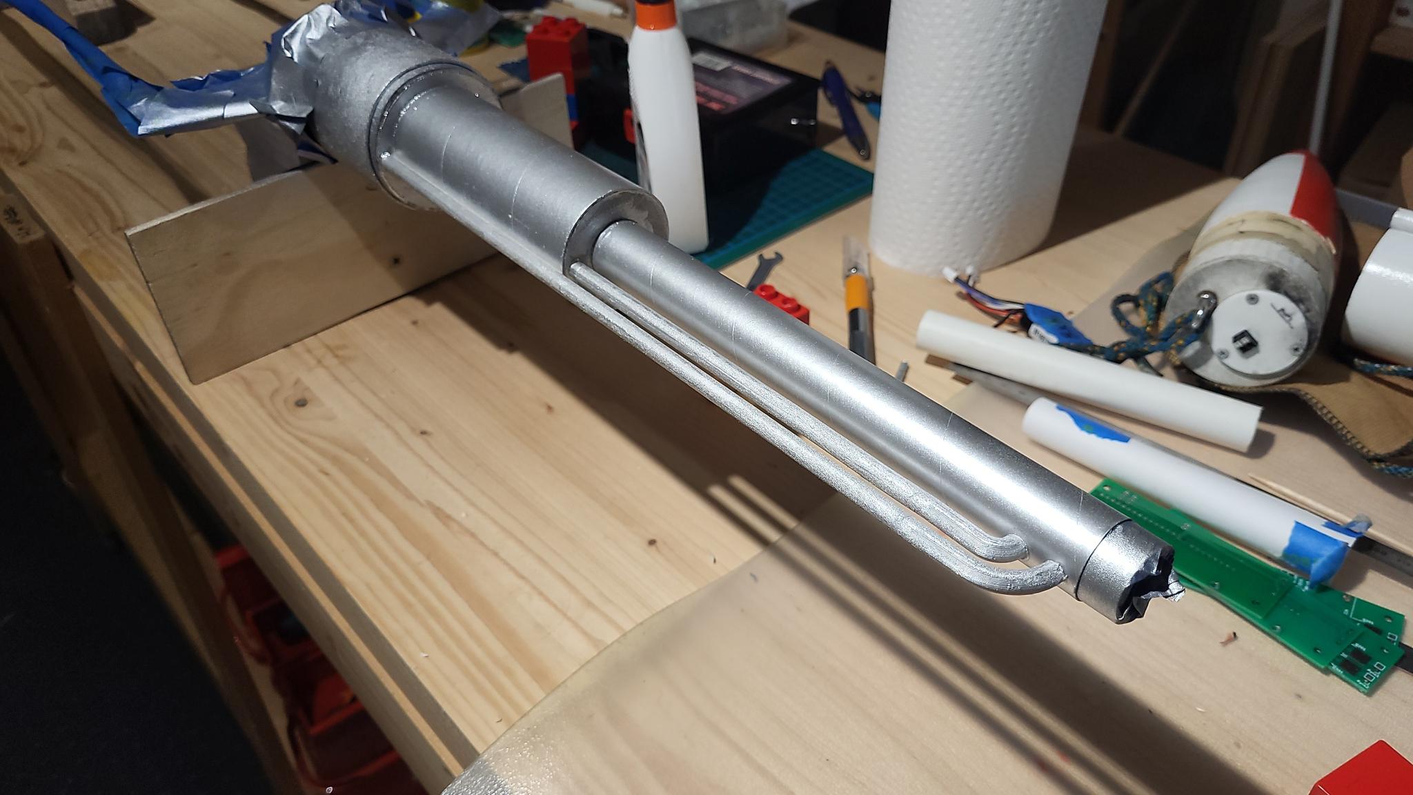 Ich hatte keine Zeit und keine Nerven, die 3D-Druck-Teile zu verspachteln, und als "10-foot rocket" sieht man aus 10 Fuß Entfernung die Oberflächenqualität sowieso nicht mehr ;-)