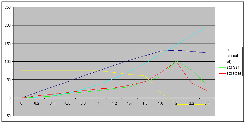 Zitat: Das sehe ich nicht so. Für die ersten zwei Sekunden laufen die Kurven absolut deckungsgleich. Zitat: Im Bereich 0-1.8 Sekunden hat es keine Peaks, aber die Kurven sind völlig deckungsgleich... Zudem geht der von Dir beschriebene Effekt in die falsche Richtung Würde man die Kurve um 0.2 Sekunden verschieben würde es in meinen Augen viel weniger genau passen. Zitat: Das ist das zweite was ich nicht verstehe: Im Zeitraum von 0-1.8 Sekunden lesen die Sensoren in einem Druckbereich von 0-100m völlig deckungsgleich. Im Zeitraum nach 2.6 Sekunden sind wir aber immer noch im selben Druckbereich, das heisst die Kalibrierungsunterschiede (welche am Gipfelpunkt zum Tragen kommen) spielen keine Rolle. Nach allen Regeln der Logik müssten demzufolge die Kurven mindestens im Bereich 2.6-3.2 Sekunden immer noch deckungsgleich sein. Da spielt meiner Meinung nach ein anderer Effekt mit. Das Aufbereiten kannst Du Dir sparen, ich habe das im Rahmen der Untersuchung von Dany's Bull Puppy schon gemacht. http://www.eurocketry.org/forum/german/viewtopic.php?t=816 (hier noch die Grafik für diejenigen die keinen Account haben (wollen) ![]() Gruss Jürg Geändert von Juerg am 12. Juni 2008 um 12:59 |