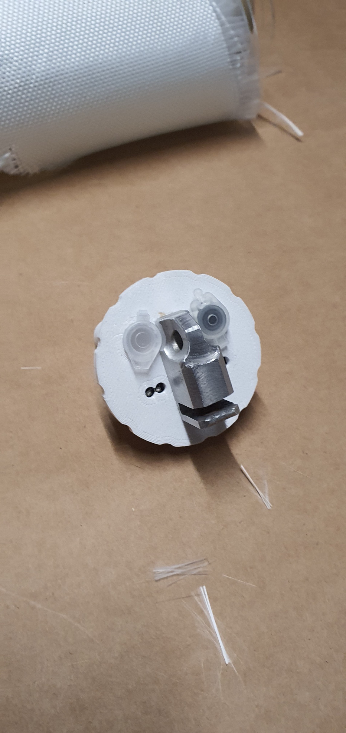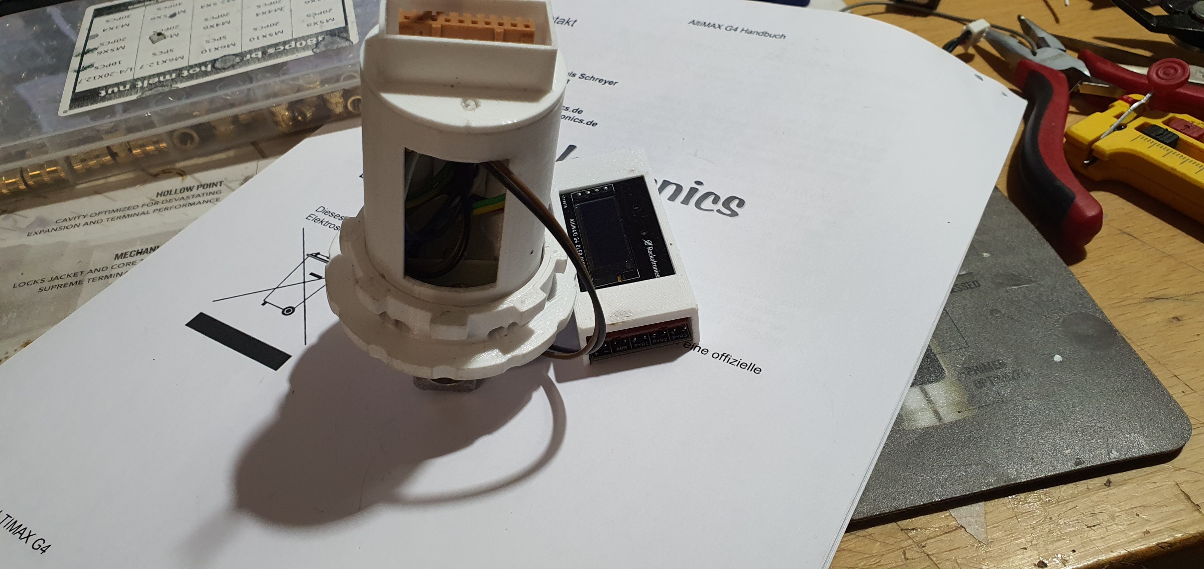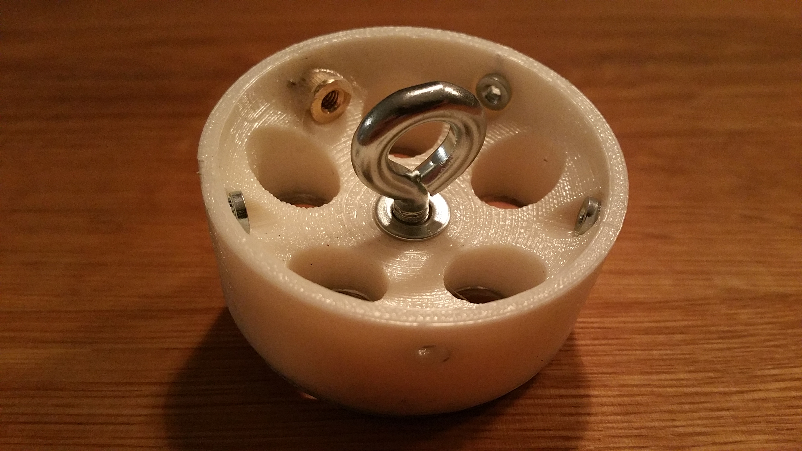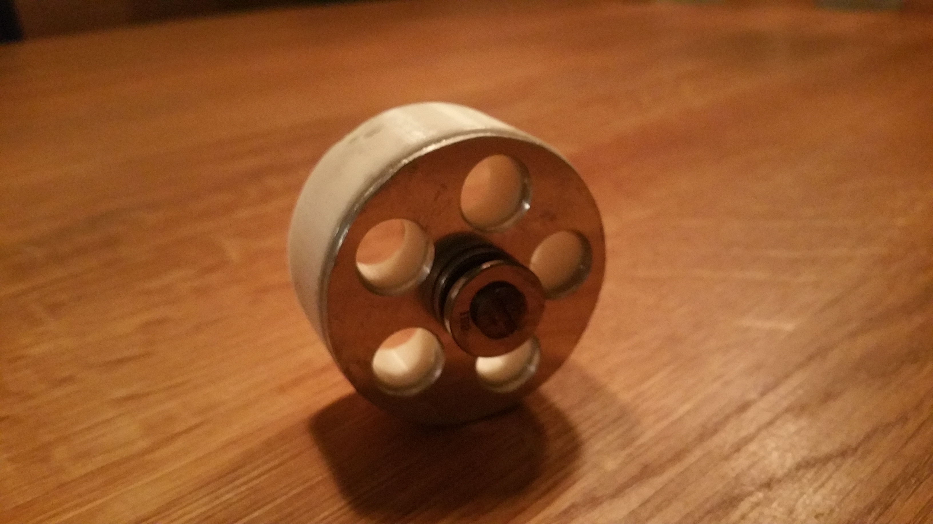 Die weiße Kappe ist nur der Tatsache geschuldet, dass ich an Statt einer M6 eine M5 Ringe-Schraube genommen habe aber kein kleineres Axiallager hatte.