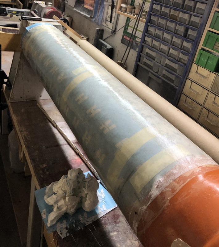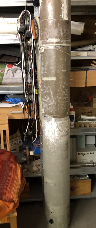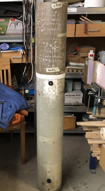 Während Louis die Elektronik-Bay in der Mache hat, habe ich schon mal angefangen die Tube fürs Starship zu laminieren. Erst mal trocknen lassen und wenn ich das Laminat wieder vom Kern heile runter bekommen habe, nochmal zwei bis 3 Lagen Glasgewebe drauf. Für die Spitze habe ich auch schon ein Plan. Diesmal will ich sie nicht aus Styrodur drechseln, sondern auf einer Gewindestange in 30mm Abständen Sperholzspanten auffädeln, die dann mit Pappmaschee belegen, rund schleifen und anschließend mit mehreren Lagen Glasgewebe laminieren. Mal sehen...