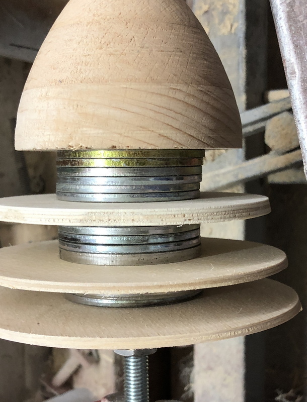 Ich habe mal angefangen und gleich 500g Gewicht (Stahlscheiben) mit eingebaut, um das Gewicht im Heck (Clusterblock) auszugleichen.