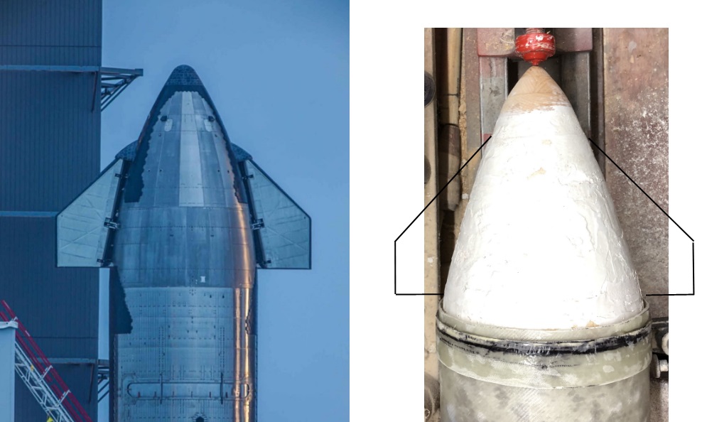 Ich habe mir mal erlaubt ein Originalbild neben ein Modellbild zu stellen um ein annähernden Vergleich zu bekommen. Der Bau der Spitze hat sich doch eher schwierig gestaltet. In den Zwischenräumen habe ich Balsarester verleimt. Gut, das ich nichts wegschmeiße. Trotz allem musste ich noch sehr viel spachteln und das ist noch nicht das Ende Es soll ja über den Spachtel noch verglast werden. Der angeflanschte Kuppler passt jedenfalls. Später wird sich mir die Frage stellen, ob ich die Spitze an die Tube anschraube, oder fest verklebe. Grüße, Rolli