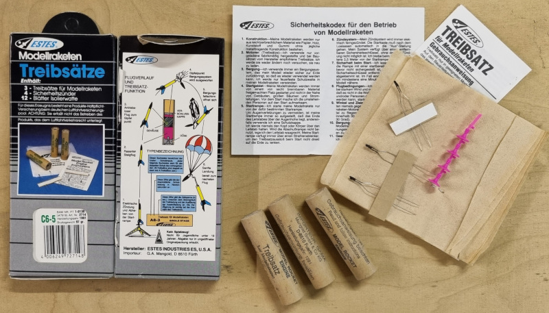 habe aus einer Geschäfts-/Haushaltsauflösung nicht ganz freiwillig einen Stall voll Estes C6-5 mit Baujahr 1991 bekommen. Zwei Sachen sind anzumerken, die Teile waren früher deutlich liebevoller verpackt und die Haltbarkeit ist beeindruckend...schieben noch 1A. ![]() Grüße, Matthias |