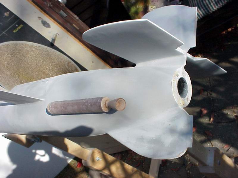 Ich denke, dass ich die Booster doch genau zwischen Flügeln und Heck plaziere. Dazu einer oberhalb und der andere unterhalb der gedachten Mittellinie. So kann man sie besser sehen, und außerdem sind sie dem Schwerpunkt näher als am Ende des Rumpfes. Ciao, Rolli |
