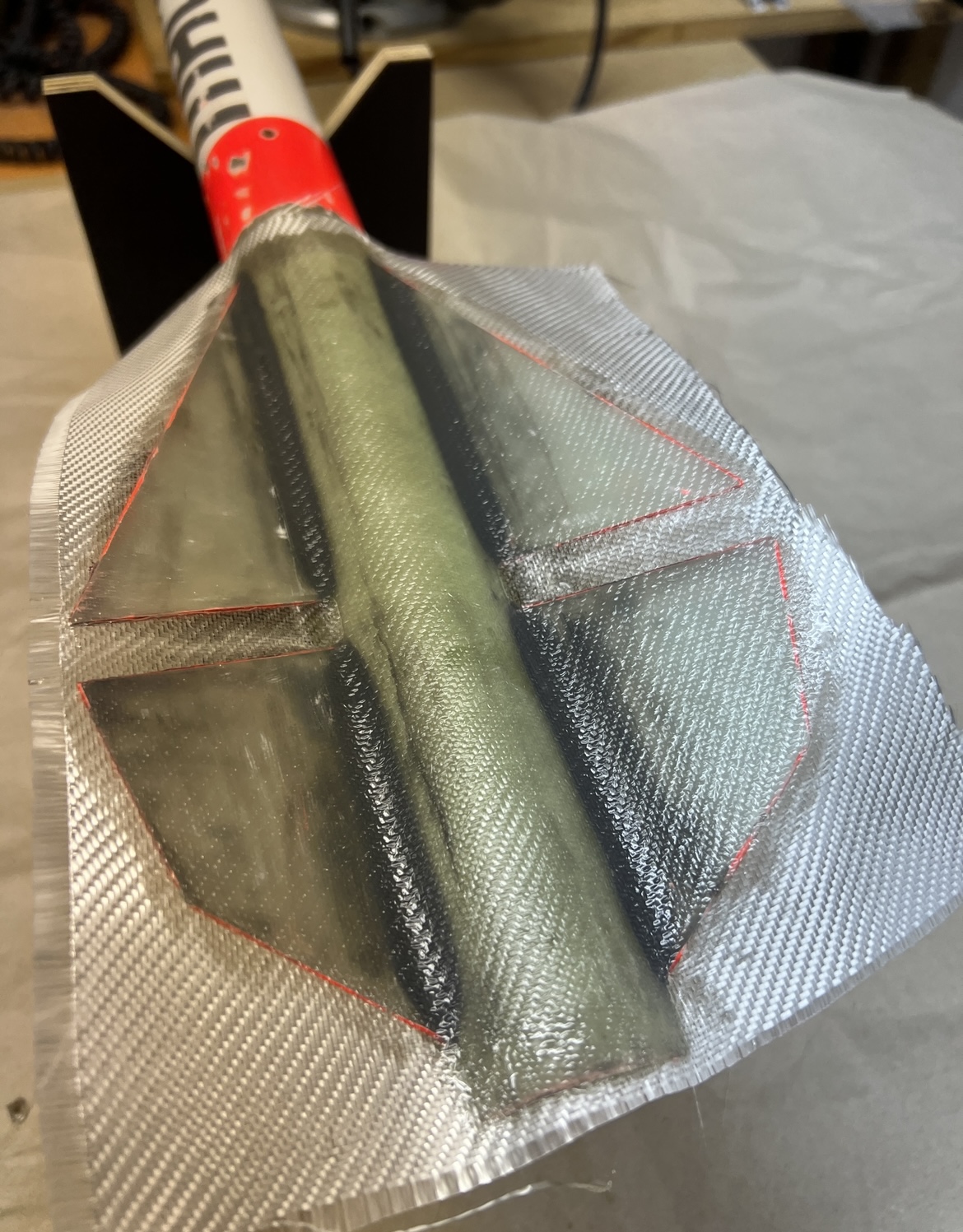 Das gute ist beim erwärmen / schrumpfen des Schrumpfschlauches wird das Harz noch flüssiger, verteilt sich nochmals gleichmäßig. der Schrumpschlauch presst das Gewebe überall perfekt an und drängt überschüssiges Harz nach außen … Auch an meiner Reperatur Baustelle geht es endlich mit Tip to Tip weiter… Viele Grüße Marco