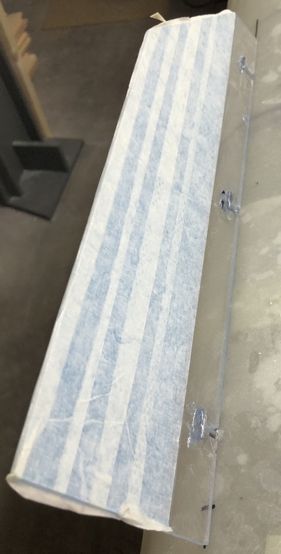 Bevor ich mit dem aufkleben weiterer Scaleelemente weiter mache, muss ich mich endlich mit den Chines und den Acryl-Hilfsflügeln beschäftigen. Ich habe in dem Acryl T-Schraubhülsen eingeklebt. Das ging ganz gut. Und man glaubt gar nicht, wie fest der Flügel nach dem anschrauben sitzt. Das Tape werde ich wohl erst nach den Lackierungsarbeiten entfernen. Es macht sich natürlich gut, dass man den ganzen Clusterblock ausbauen, und somit Teile von innen anschrauben kann. an dem Flügel kann man nun die schräge Verkleidung anbringen, welche dann noch die Leimsicken verdeckt und zusätzlichen Halt bringen.