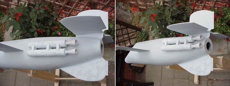 Klasse das Teil. Ich würde es auch so sehn wie Andi, ausserdem halte ich die Booster im Heck aerodynamisch für günstiger-sie wirken ja auch wie Flossen. Somit sollten sie helfen, den Druckpunkt nach hinten zu verschieben, meine ich? ________ Grüssle, Sly |