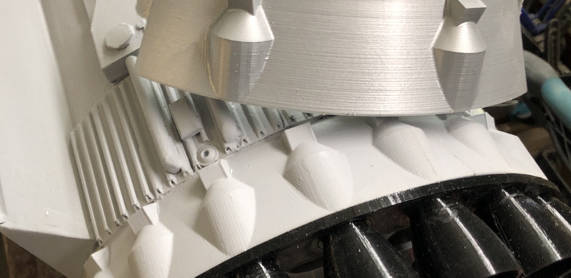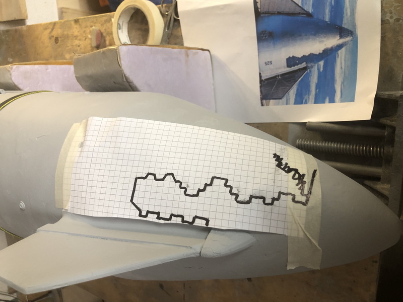 Mensch, das sind die sechseckigen Hitzeschutzkacheln. Mir fällt nur 3D Drucken und aufkleben ein. Dann können wir allerdings erst nächstes Jahr den Start bewundern