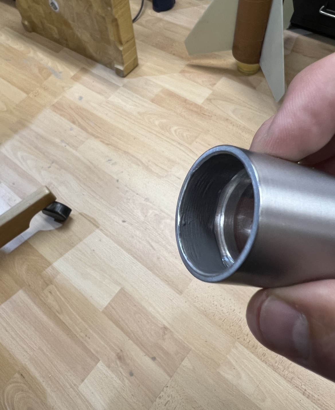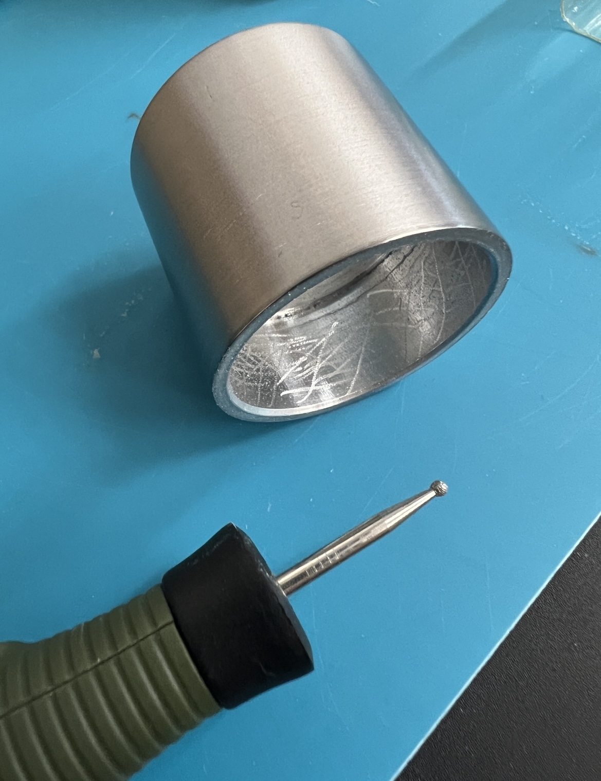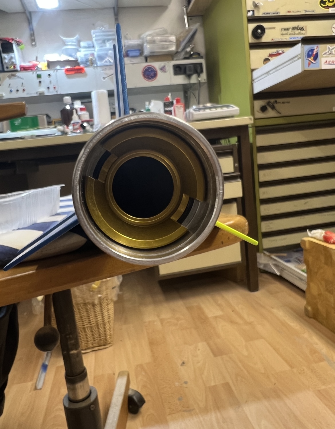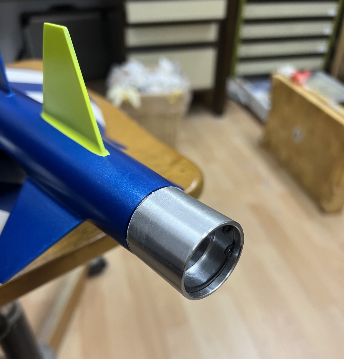 Heute war es endlich soweit und der tolle Retainer von Ralf ist angekommen ! Alles hat wie geplant sehr gut gepasst ! Und er fügt sich wie ich finde sehr gut in das Modell Design ein .. Um ihm den letzten Schliff zu geben im wahrsten Sinne des Wortes habe ich die äußere Oberfläche noch etwas überarbeitet.. Angefangen habe ich mit 400er Papier ( gleichmäßig über schleifen) um jegliche Riefen und Macken aus der Oberfläche zu bekommen … Dann ging es mit 1000er / 2000er / 4000er Schleif Leinen weiter … Abschließend noch mit 6000er / 8000er und 12000er Pads der letzte feinschliff … Um das Ergebnis zu versiegeln wurde der Retainer mit Zapon lackiert … es ist ein Hochtransparenter Lack speziell für Metall Oberflächen … wie gut der im Einsatz hält wird sich zeigen .. bis zum ersten Flug allerdings wird es sehr schön sein ;-) Morgen wird er dann verklebt … Viele Grüße