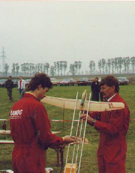 rechts Johann S.aus dem Holzwinkel --------------------------5- Die Flügelbefestigung besteht vorn aus einem 1,8-Stahlstift, hin- ten aus einer 3 M-Schraube. Die relativ einfache Flügelbauweise macht es vorteilhaft, mehrere Tragflächen für diverse Wetterlagen zu bauen. (Mein Modell kann mit Flächen von 940, 980, 1 040 und 1 120 mm geflogen werden, ein 980-mm-Flügel wir an dem Siegermodell l in Kiew montiert.) Die RC - Anlage hat einen 2-K- Empfänger Acoms (ohne se), einen Akku von 110 m/AH und zwei Mikroservos. .... .......................................-6-...... Folgende Datei wurde angehängt: