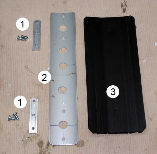 Der jetzige funktioniert zwar ganz gut aber Holz und Wasser ist ja immer so eine Sache. Hier nochmal die Komponenten des alten Schlittens (1) Gummi zum Halten der Rakete (Das gelbe Band dient zum Wiederfinden auf der Wiese) (2) Sicherrungsstift (Hält das gespannte Gummi (3) Der Schlitten (aus Holz) Hier schon mal die ersten Teile für den neuen Schlitten. (1) Halter, die den Schlitten an der Schiene (Rampe) halten. Die Lösung kann echt so einfach sein. Die Teile sind eigentlich Verbinder für Gardinenstangen (Die haben schon drei Bohrungen mit Gewinde!) (2) Die Basis für den Schlitten. (3) Aufnahme/Auflage für die Rakete (PP-Hohlkammerplatte. Auf der Rückseite längs eingeschnitten lässt sich die Platte gut biegen und somit an den Raketenkörper anlegen. Tja, wie es im Detail weitergeht muss ich mir noch überlegen. Die Lösung mit der Gummilasche ist zwar ganz gut, aber ich würde die Rakete beim neuen Schlitten gerne an zwei Punkten halten. Eventuell zwei Gummis, die dann synchron gelöst werden. Mal sehen. Gruß Marcel If You Don't Try, You'll Never Know |