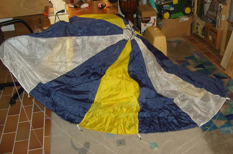 ich habe schon einige Schirme genäht, dazu habe ich unbeschichtetes Ripstopnylon bzw. Fallschirmseide verwendet. Das Material aus dem Drachenbau eignet sich nicht so gut da es sich nicht so klein falten läßt und sich auch nicht so schön öffnet, vor allem bei kleinen Schirmen. Schau mal hier ins Archiv da habe ich das mal beschrieben Mit der heutigen Erfahrung würde ich, für kleine bis mittlere Schirme ( bis 1m Durchmesser ), auch keine Schnur mehr in den Rand einnähen eine verdeckte Kappnaht reicht hier zur Stabilisierung aus. Die Leinen dann einfach ca 15-20cm mit in den Nähte der Segmente mit einnäht. Bei Schirmen mit einen Durchmesser von mehr als 1m habe ich dann Saumbänder in Schlaufen auf die Segmentnähte genäht und dort die Leinen verknotet. Hier mal ein Bild von einem meiner Schirme, da kann man erahnen was ich mit den Schlaufen meine Gruß Andreas Geändert von Bäckchen am 30. Mai 2013 um 12:11 In Wirklichkeit ist die Realität ganz anders !? |