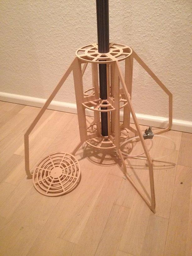 So, das Rohr ist auch geschlitzt: Ich setze hier auf 18mm INOX-Abbrechklingen von Mozart. Die sind durch den Schliff doch wesentlich schärfer als no-name Klingen. Wenn man abrutscht sind die auch gut, da wächst alles wieder echt schnell zusammen. Verarbeite beruflich tausende Klingen am Tag, da macht man seine Erfahrungen Das Rohr passt wie erwartet auch sauber auf die Konstruktion: So schaut das im Ganzen aus, schon imposant, die Chips-Dose dient als Größenvergleich: Gruß Fabian