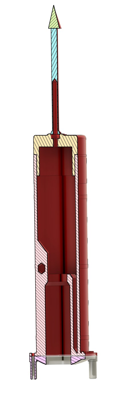 Heute hatte ich mal wieder Zeit an der Redstone zu arbeiten, es fehlt noch ein Teil: Der Rettungsturm, der im ernstfall die Kapsel von der Rakete ziehen sollte (und bei einem Startversuch noch an der Rampe akjtiviert wurde :-) Ich möchte den Turm während des Fluges wie beim Original abwerfen, dazu muss er einen Antrieb in Form eines B4-4 Motors bekommen, ich muss aber noch Testen ob das genug Schub liefert um den Ganzen Tower abzuwerfen. Ein C6 passt evtl. noch rein, aber das wird knapp. Das Gerüst wurde von mir vor vielen Jahren schon mal aus Messingrohr zusammen gelötet, die Rettungsrakete kommt oben drauf und wird wegen der Komplexität ausgedruckt. Sie besteht aus 4 Teilen und nimmt einen aufs minimum gekürzten B4-4 auf. Davor passt dann noch ein wenig Strömerband für die Bergung. Das Ganze wird am Sockel mit M2-Schrauben an den Messingturm befestigt, die filigrane Spitze vorn steckt auf eine M3-Öse, eine Mutter in der Kappe hält die Öse am Platz. So sieht es dann nachher fertig aus Und so von innen: