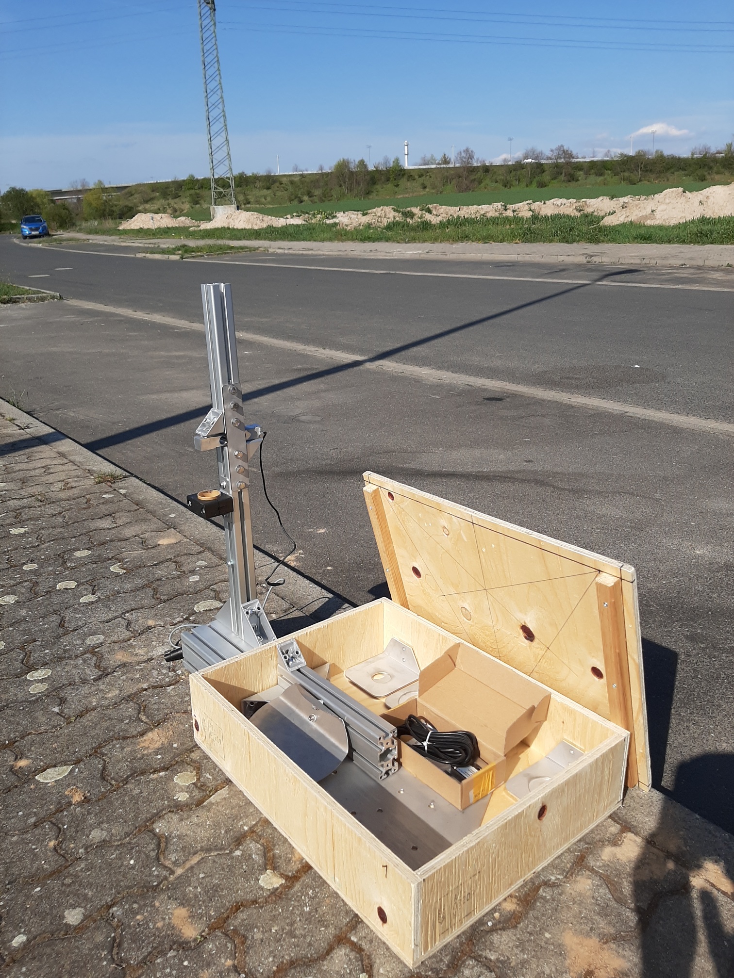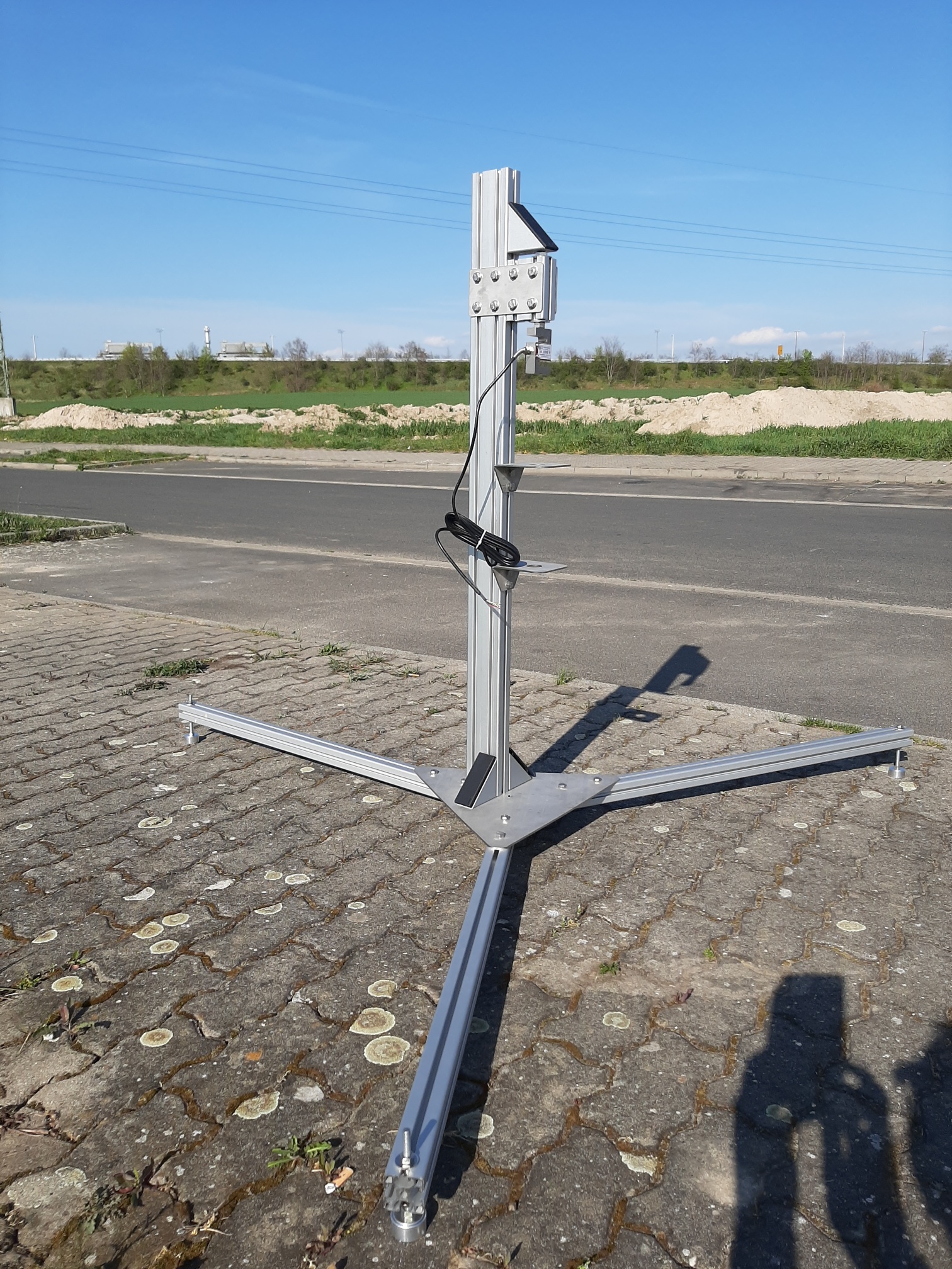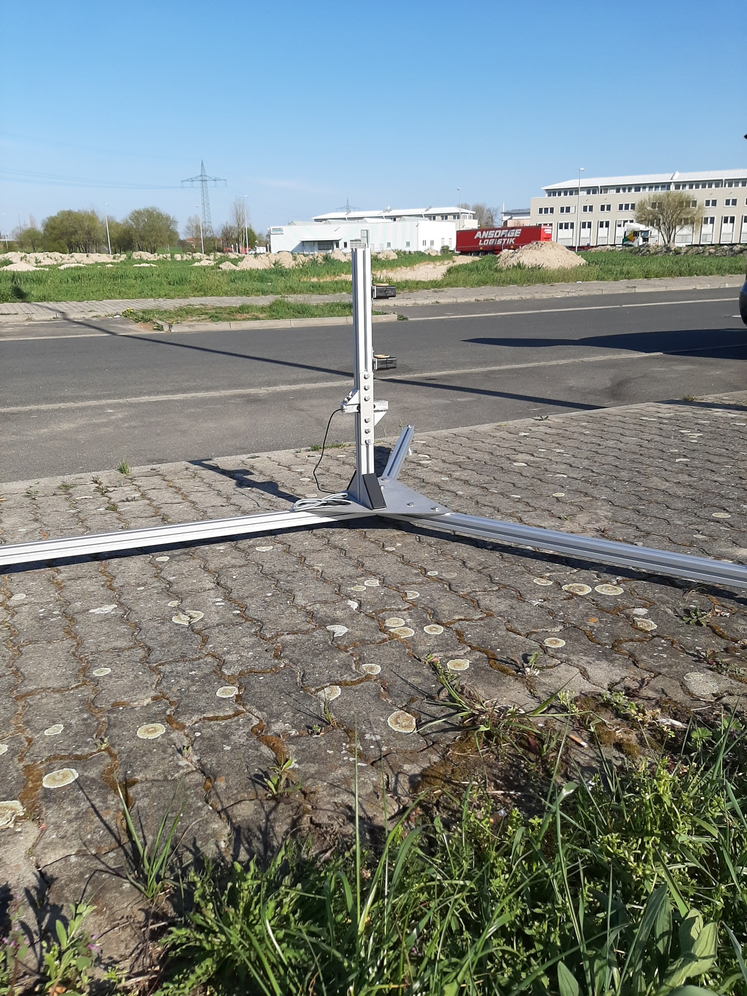 Hier mal unser Versuchsaufbau für den großen Prüfstand. Wir haben ja auf der Roten Jahne unsere Betonsäule, wo wir auch mal Motoren größer I-Impuls sicher am Prüfstand dran hängen können...