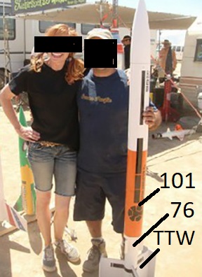 Verjüngung? Du meinst am kleineren Durchmesser? Eine Verjüngung gibt es hier nicht, der "Übergang" ist übergangslos Und, ja, das 3-inch Rohr soll den dünneren Teil darstellen Für das obere Rohr kommt man dann auf 4 inch, im Original der Estes-Nomenklatur BT-20 und BT-50 mit 18,6/24,8 mm = 0,75 exakt.