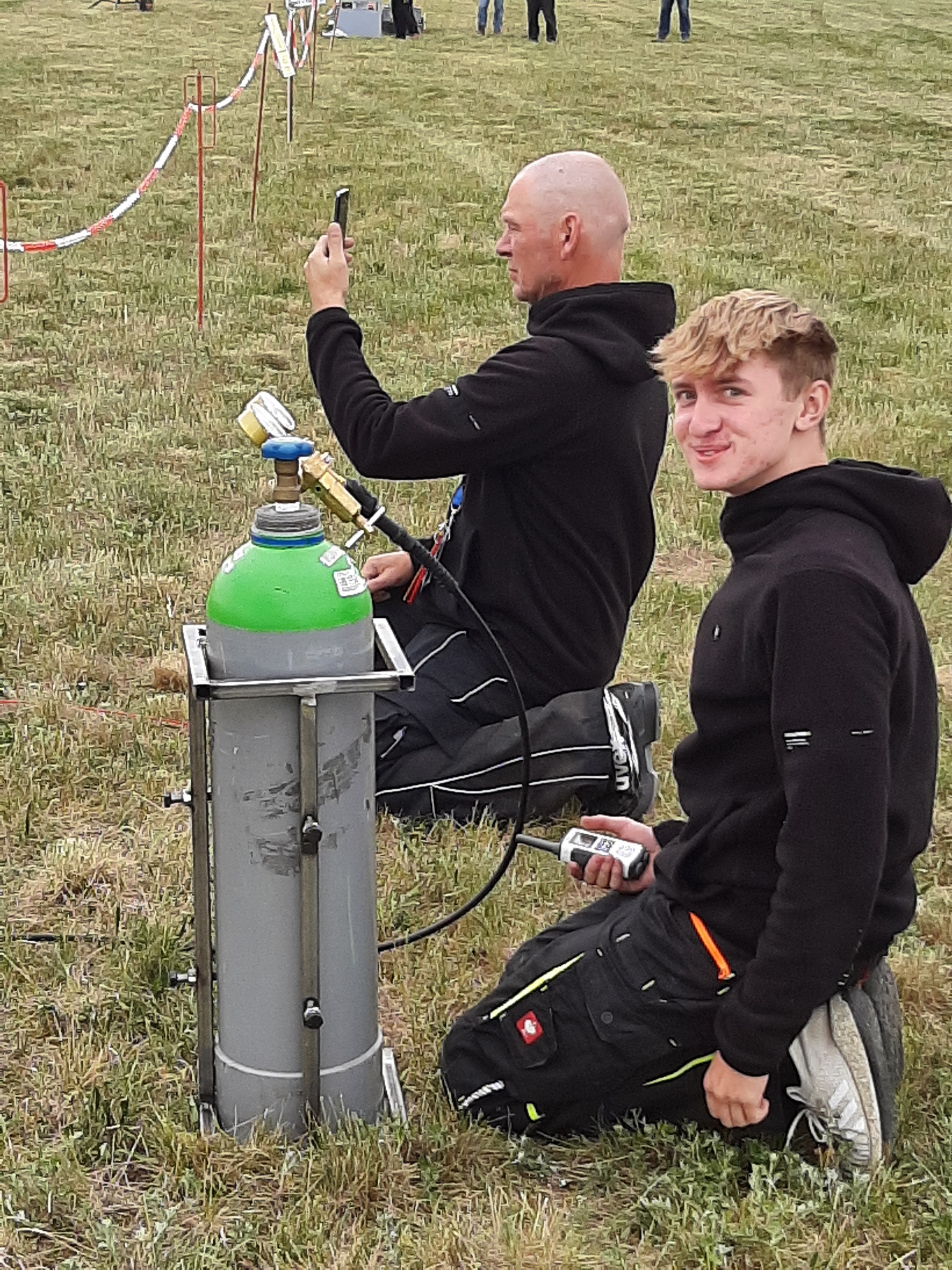 Janick und Heiko bei der Startvorbereitung ihrer tollen Wasserrakete