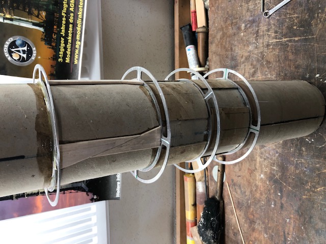 deine Fräseinrichtung gefällt mir auch. Den Mist mit Lochkreissägen bin ich langsam leid, vor allem, da bei mir jede Rakete andere Rohrdurchmesser hat, die nicht Standard sind.