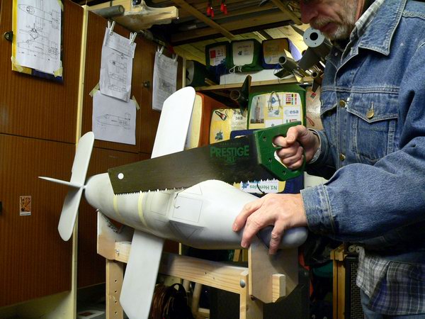 Hi all, nachdem nun etwas Zeit seit dem ersten Flug verstrichen ist, ich nochmals über alle Probleme nachgedacht habe, ist jetzt der Moment gekommen, wo ich die Säge angesetzt habe. Eigentlich wollte ich erst im nächsten Jahr weiterarbeiten, aber wenn man mal einen Tag frei hat... Ich habe mich allerdings doch ganz schön überwinden müssen, ein unbeschädigtes Modell, wo ich so manche Stunde an der Spitze gewerkelt und geschliffen habe, da mittendurch zu sägen... Folgende Datei wurde angehängt: