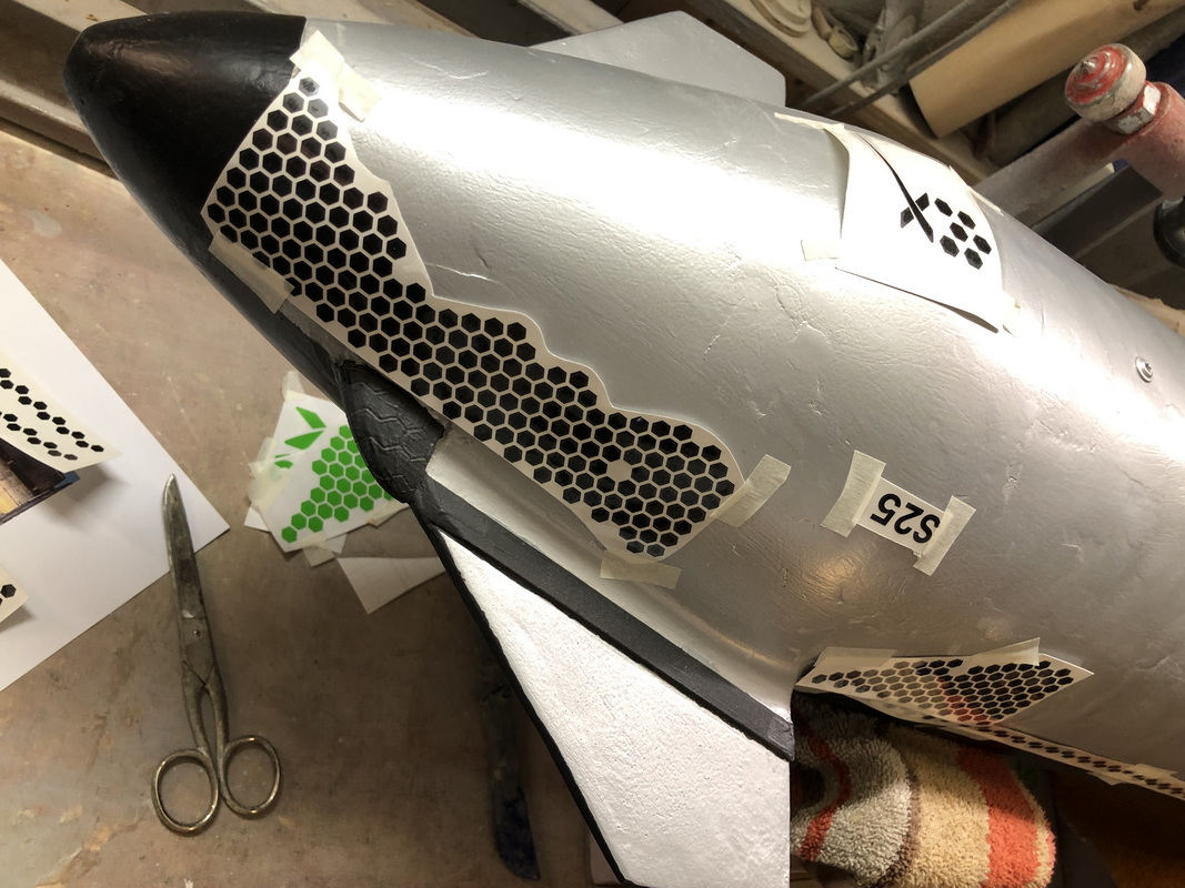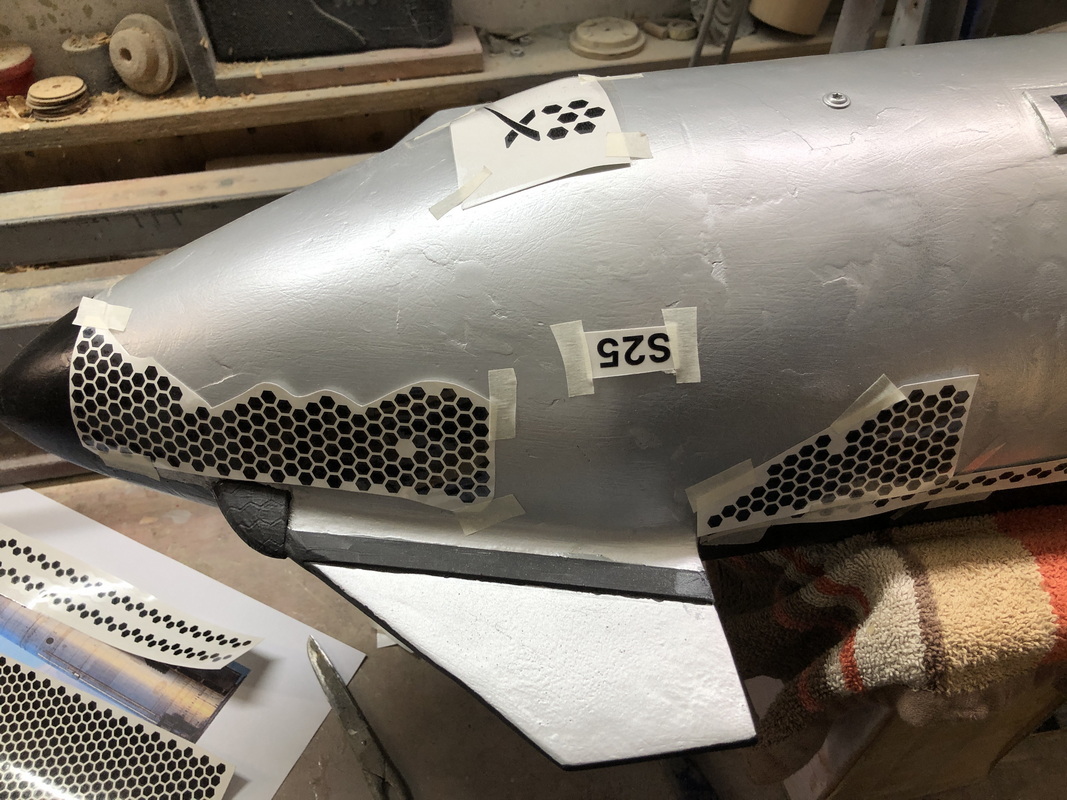 Nein, die auf der Rückseite sind schwarz, jetzt habe ich die Flügelfläche wegen der Zwischenräume der Kacheln silber übersprüht. Musste aber nun feststellen, dass es doch besser wäre, die Zwischenräume der Kachen nur 0,5mm zu machen. Also, wenn Du noch nicht angefangen hast, dann mache mal die engere Version.