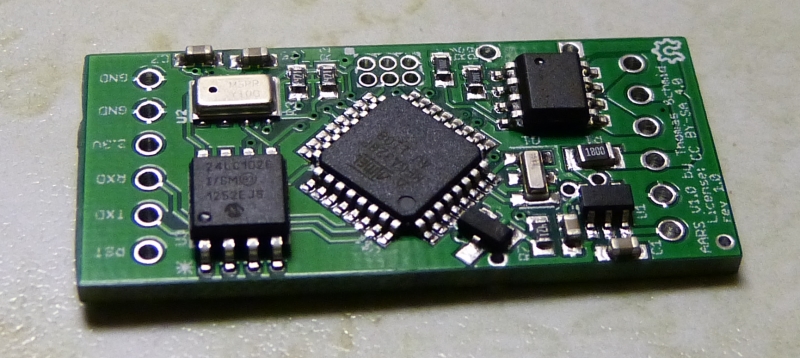 Die Paste hab ich mit einer Schablone aufgetragen. Die Schablonen hab ich von OSH-Stencils. Die sind aus Polyimide gelastert und qualitativ mehr als ausreichend. Den SMD-Buzzer hab ich jedoch händisch aufgelötet. Da ich beide Seiten in einem Durchgang gelötet habe hatte ich Angst das er mir beim löten runterfällt. Hier noch ein paar Infos: - Drucksensor Freescale MPL3155A2 - Größe: 35x16.5 (ohne Stiftleisten) - Controller: Atmega328 - Kann über die serielle Schnittstelle programmiert werden (Arduino Bootloader) - 2 Pyrokanäle mit max 9A Zündstrom - ... Hier noch ein Foto von der anderen Seite Gruß Thomas Geändert von schmidi093 am 13. Februar 2014 um 22:59 |