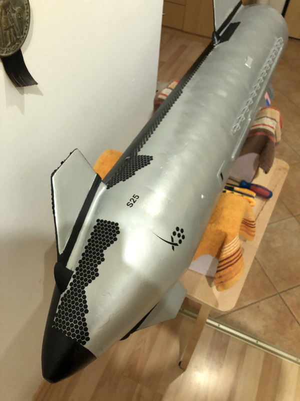 Das Starship liegt bei mir momentan im Korridor. Hier habe ich die optimale gleichmäßige Temperatur, welche offenbar wichtig zum aufkleben der Folien ist. Ist trotzdem nicht ganz einfach das alles an die richtige Stelle zu pappen. Ein paar Tage brauche ich noch bis sie ganz fertig ist. Grüße Rolli