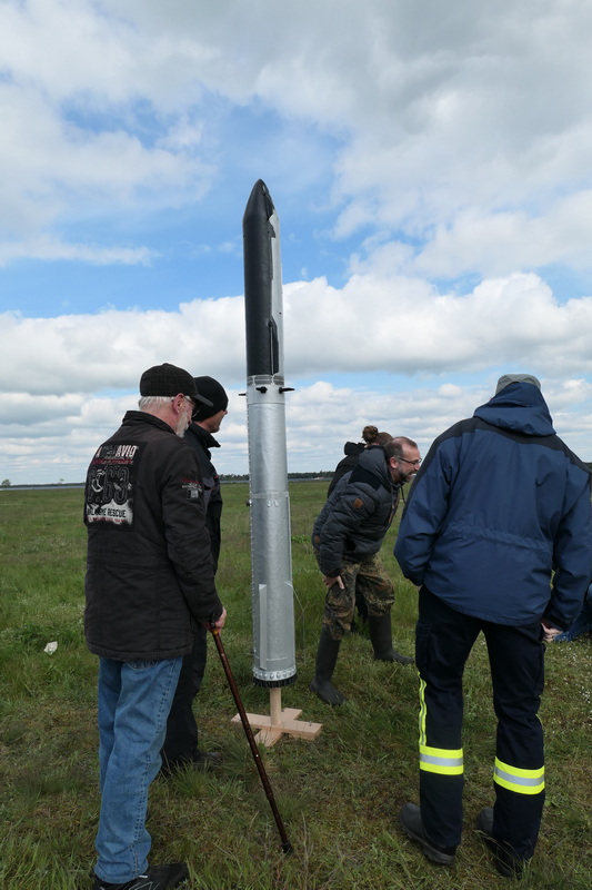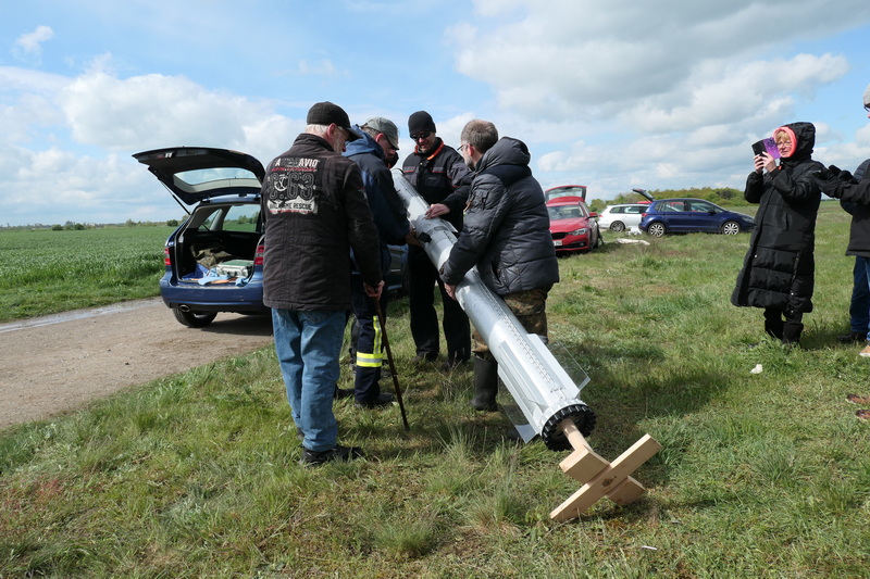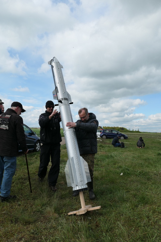 es musste nochmal der Kuppler nachgeschliffen werden... jetzt passt er aber... aufrichten zu voller Größe... sie steht! Ich meine, können wir so lassen... der Schwerpunkt wird gemessen... Die Waage sagt 15,4 kg Ciao, bis zum Start Rolli