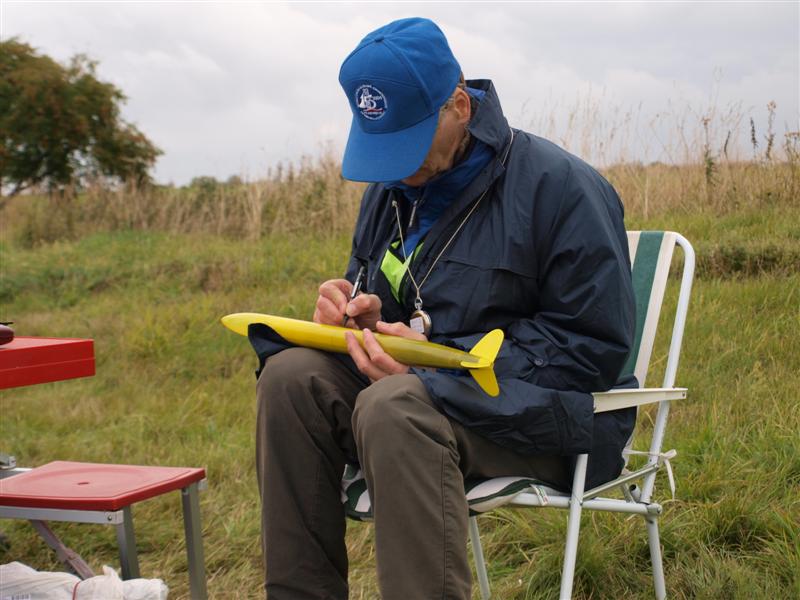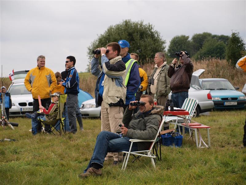 Die Zeitnehmer schauen den Modelllen hinterher um bei der Landung abstoppen zu können.