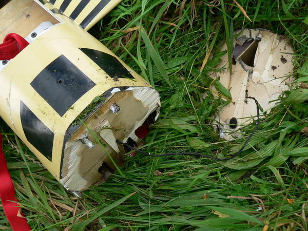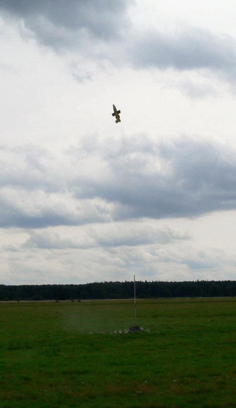 Ich war trotz des Desasters der Landung recht zufrieden mit dem Flug. Trotzdem das Hecktriebwerk nicht zündete, war der Flug nicht schlecht. Das Flugprogramm inklusive Bremstriebwerk funktionierte einwandfrei. Man sah sehr deutlich, wie die Natter in ca. 100m nach zünden des Bremtriebwerkes ihren da wagerechten Flug um schätzungsweise die Hälfte verlangsamte. Experiment hatte voll funktioniert. Die Fallschirmklappe ging auf, der Fallschirm entfaltete sich und riß an den Fallschirmleinen (nicht dem Schockband) ab. Folgende Datei wurde angehängt: