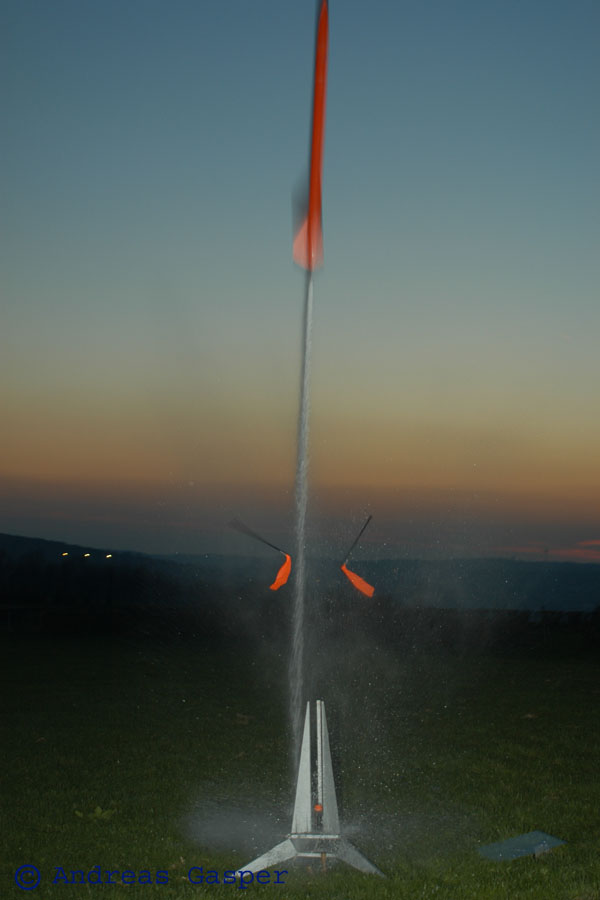 Das Bild hab ich nicht gemacht sondern der Andreas Gasper, ein semiprofessioneller Fotograf. Ein wenig Glück gehört in der Tat schon dazu, die Rakete so zu erwischen.