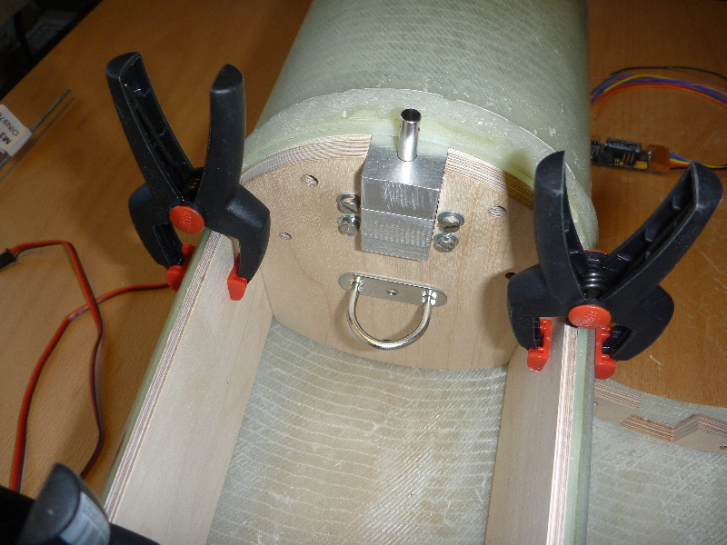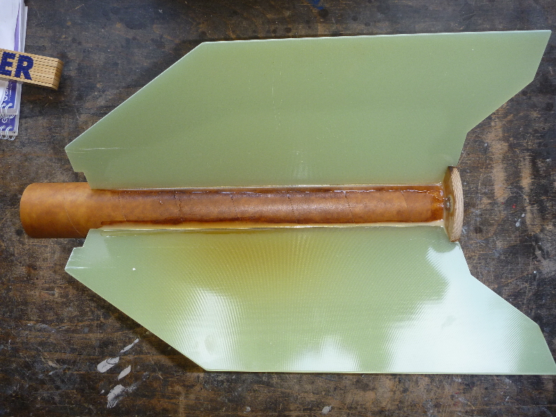 Zwischen Motorrohr und Leitwerk sind Fillets eingebracht, und zur Verstärkung mit 160g Glas laminiert. Endlich gehts mal wieder weiter! Im Augenblick grüble ich über Möglichkeiten einen Klappenmechnismus zu realisieren. Ausserdem möchte ich die noch notwendigen Komponenten (Hauptfallschirmkammer, Elektronik ect.) möglichst weit oben unterbringen. Desto geringer wird das zusätzlich nötige Ausgleichgewicht in der Spitze.