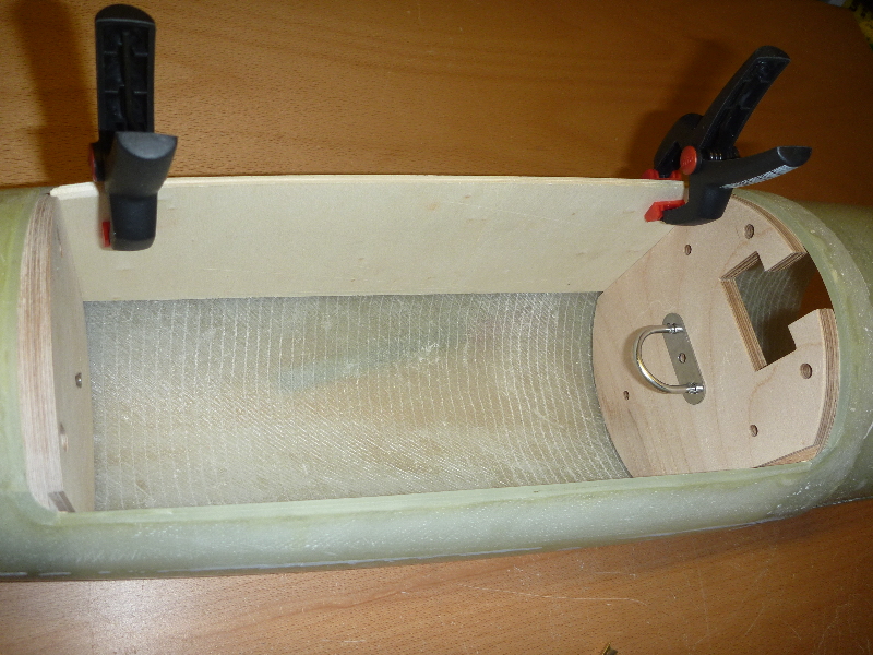 Der Kasten für den Hauptfallschirm ist soweit fertig:  Die Seitenteile werden beim späteren Einkleben etwas gebogen:  Der obere Spant: Der Untere Spant mit dem Federmechanismus: Der über eine Feder gespannte Bolzen, soll die Klappe öffnen: Viele Grüße Dennis