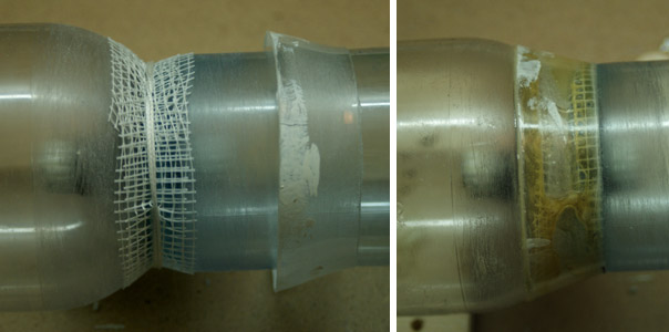 Ab und zu sollte man neue Ideen auch mal vorher an einem Modell testen. Nachdem ich den Tank zum Lackieren vorbereitet hatte gab es gestern einen Drucktest. Bei 8,5bar hat sich eine Gummidichtung beim Übergang der beiden Flaschendurchmesser verabschiedet. Und ich hatte schon bei der Montage irgendwie bezweifelt, dass das hält, dann aber trotzdem weitergemacht. Tja, hinterher ist man immer schlauer. Nur gut, dass man SST-Tanks wieder relativ gut zerlegen kann. Ich habe heute die Verbindungsstelle demontiert und war überrascht, wie stabil die Kombination aus dem GFK-Gewebeband und dem Pu-Leim ist. Beim nächsten Versuch werde ich eine Dichtungen aus tetra-pack-Pappe einsetzen. Was früher bei Motorradmotoren funktionierte muss doch auch hier klappen. Gruß Marcel If You Don't Try, You'll Never Know |