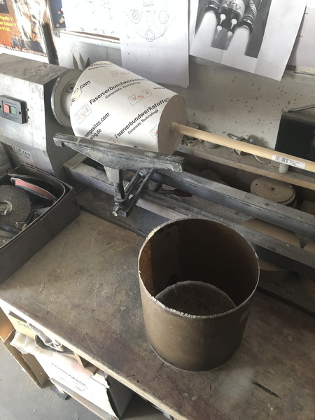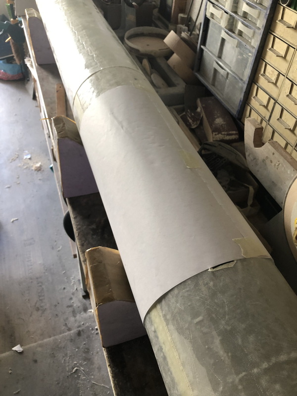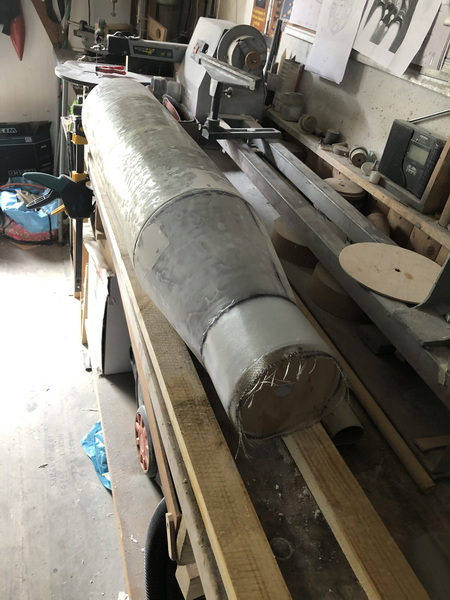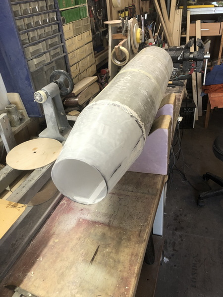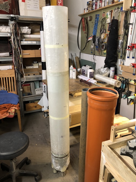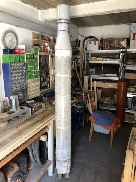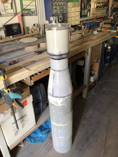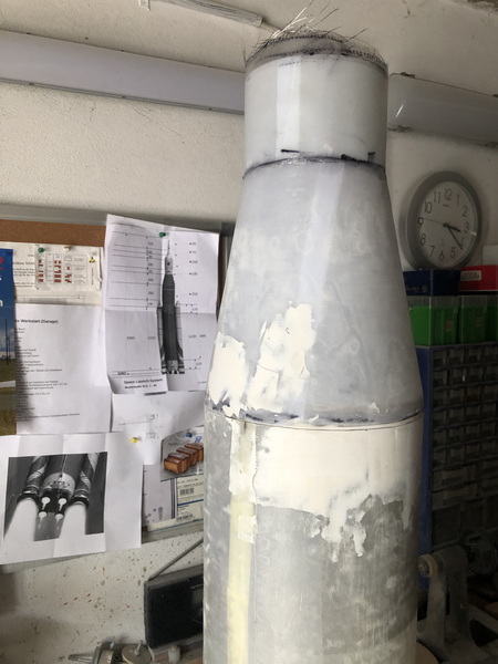 und weiter gehts mit der "Interim Cyrogenic Propulsion Stage"  man muss ja wissen, was man so baut Ein Zylinder aus Zeichenkarton wird angeflanscht und dann wieder mit einigen Lagen Glasgewebe laminiert, und wieder ist die Rocket um 85mm gewachsen.